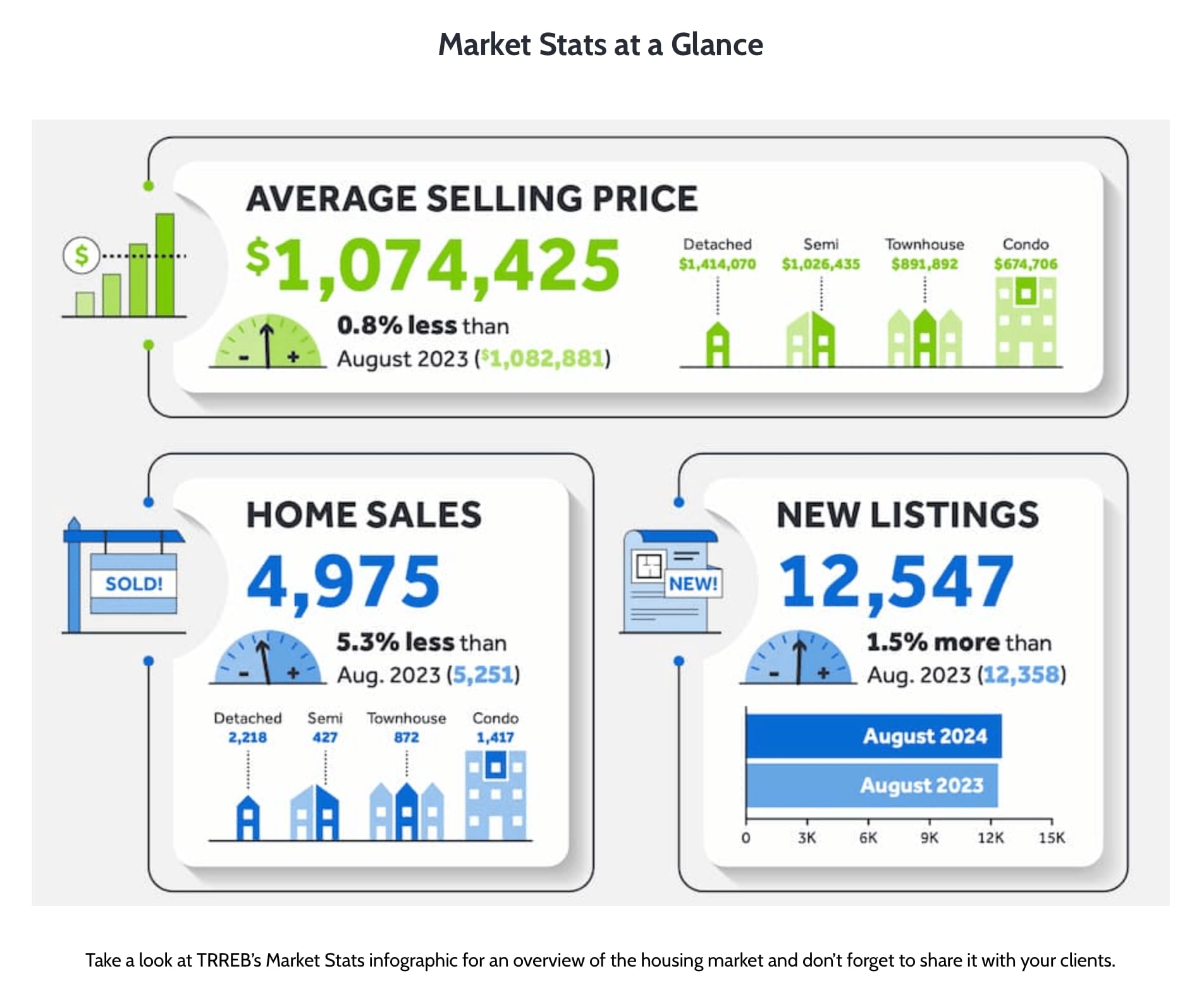 Greater Toronto Area (GTA) home sales were down on a year-over-year basis in August 2024.